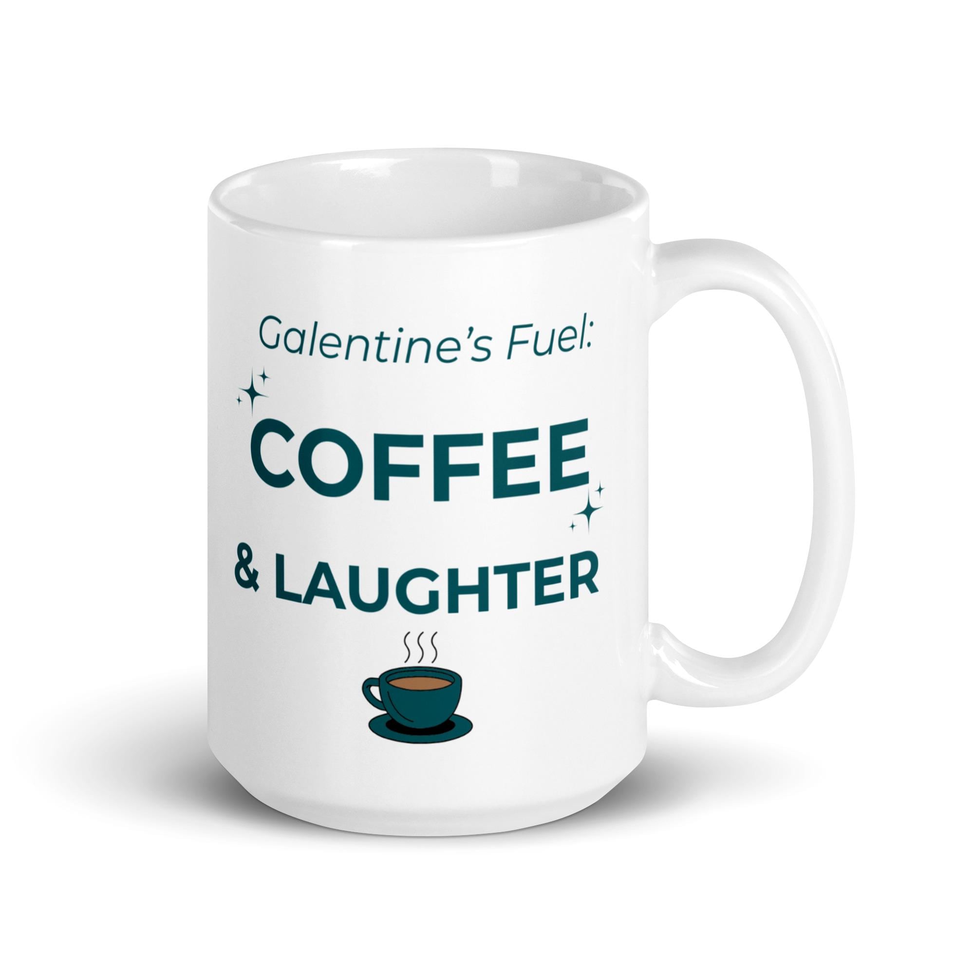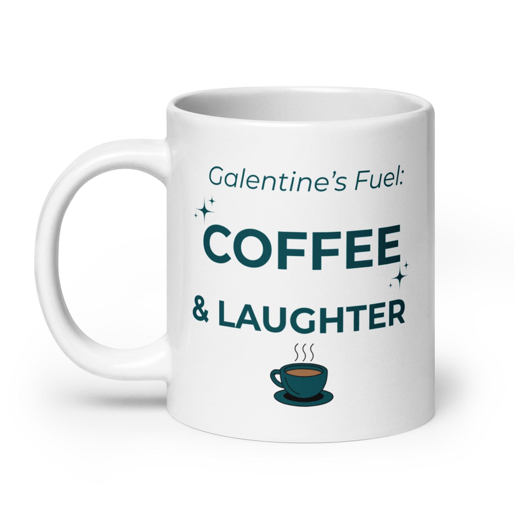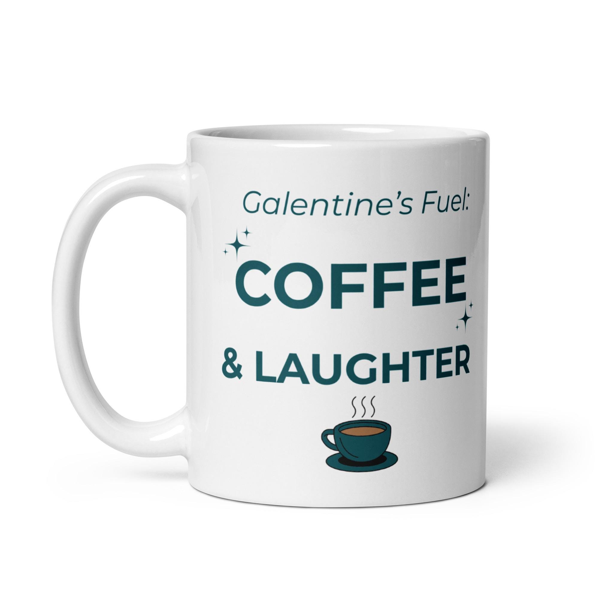 Whether you're drinking your morning coffee, evening tea, or something in between—this white ceramic mug is for you! Sturdy and glossy, it features the phrase “Galentines Fuel – Coffee & Laughter” **printed on both sides**, and the vivid print withstands both microwave and dishwasher use.