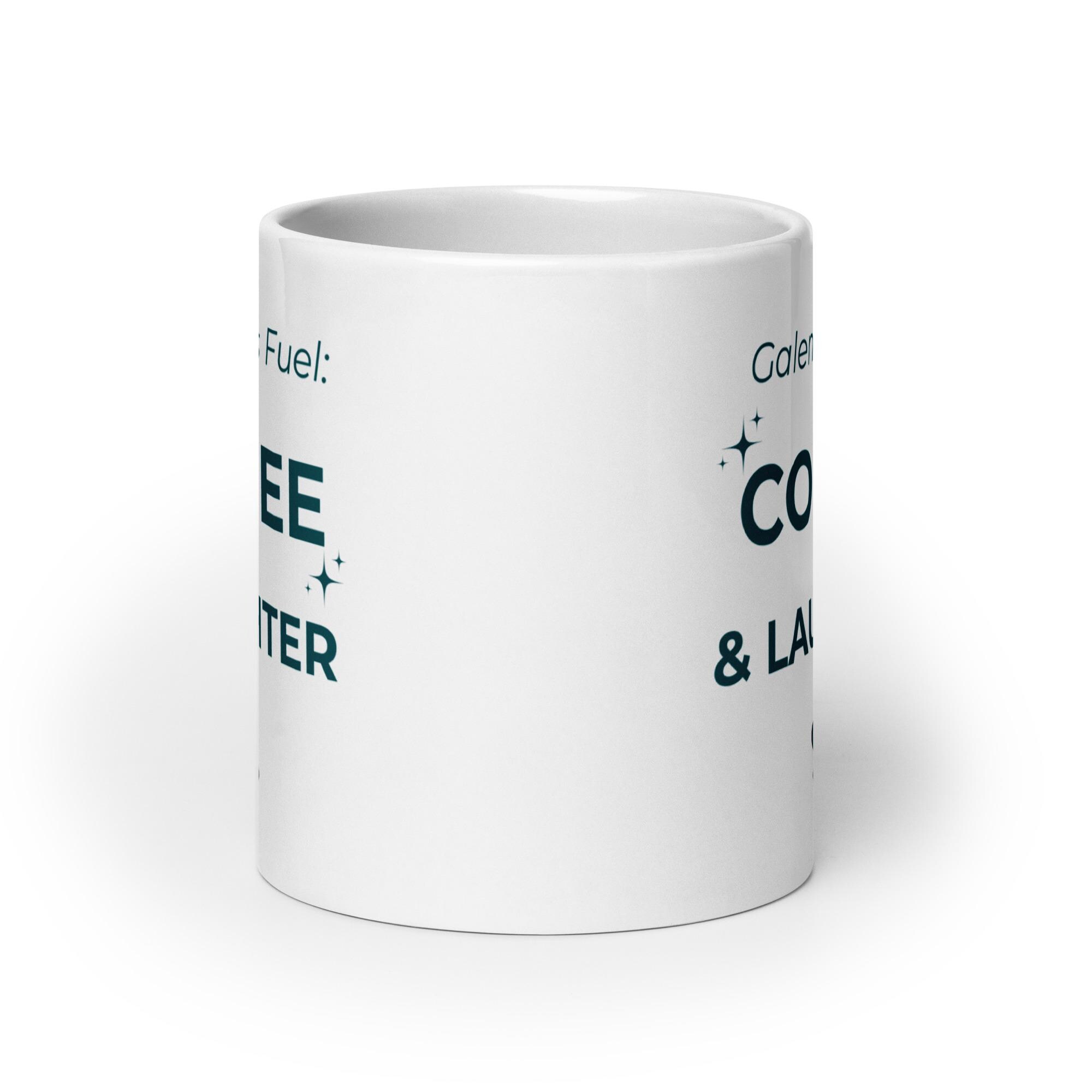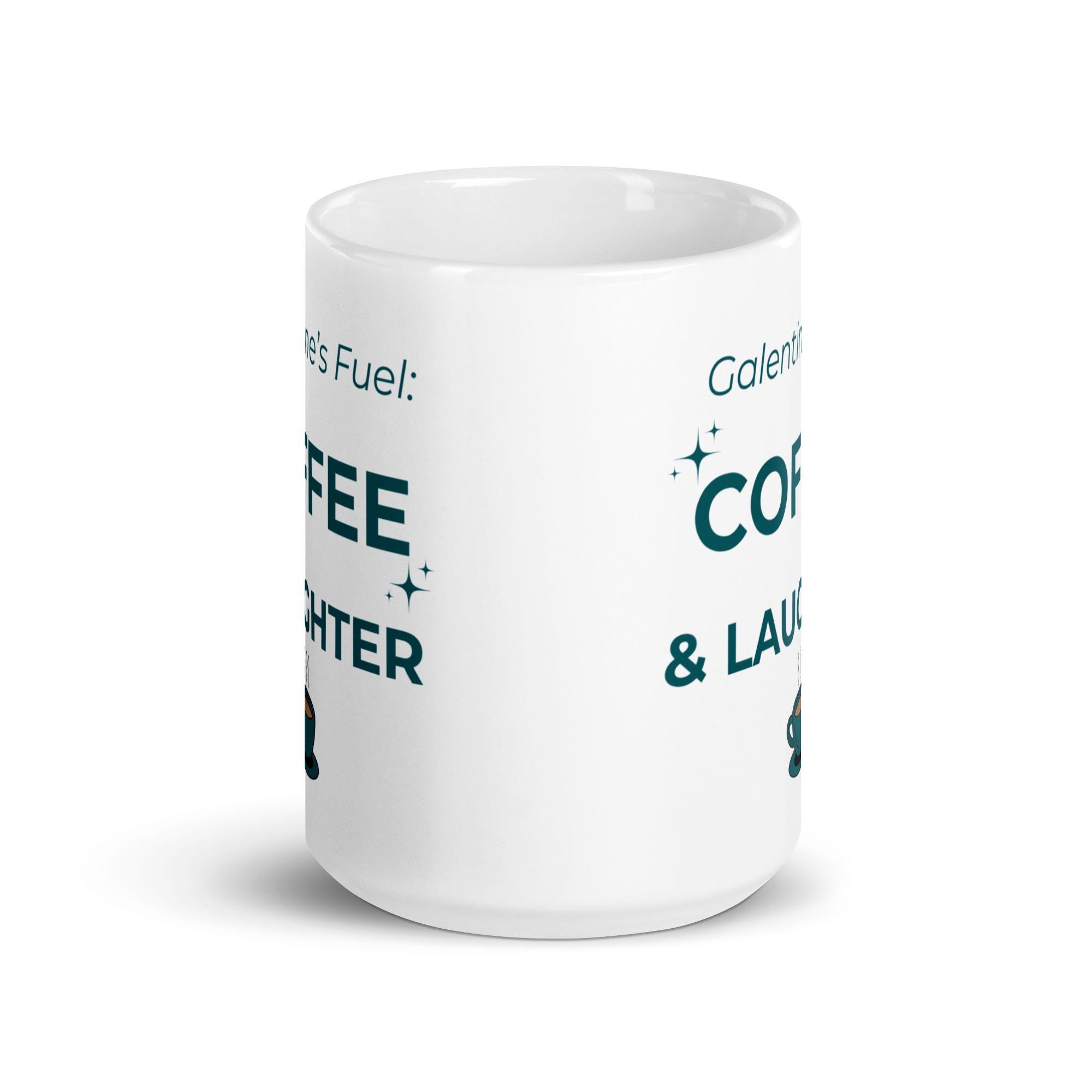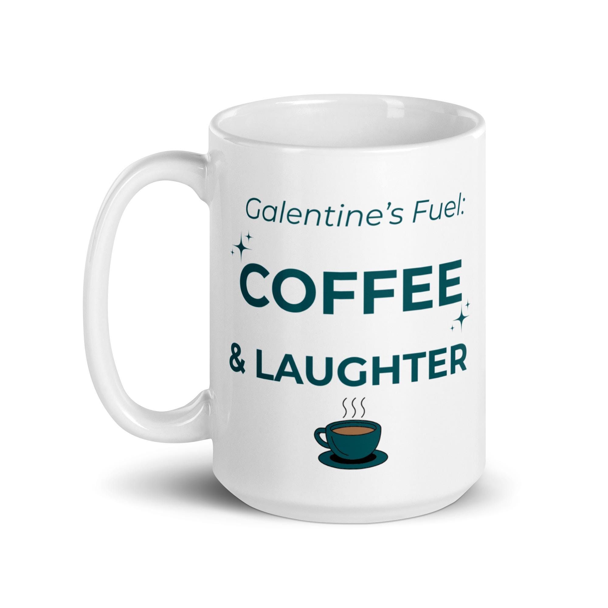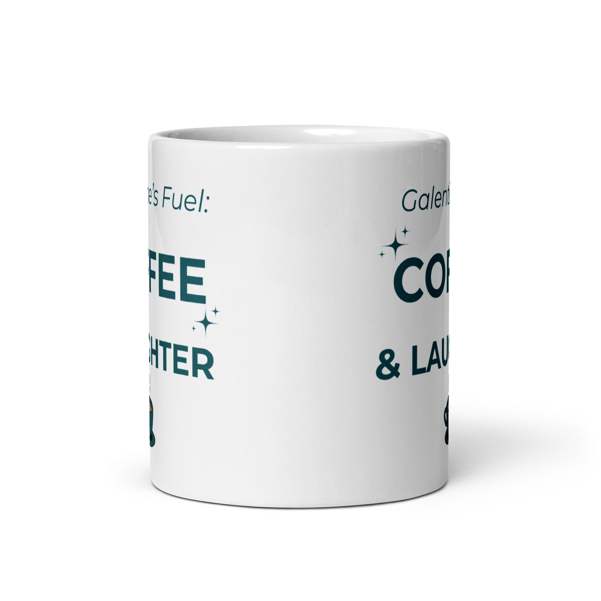 Whether you're drinking your morning coffee, evening tea, or something in between—this white ceramic mug is for you! Sturdy and glossy, it features the phrase “Galentines Fuel – Coffee & Laughter” **printed on both sides**, and the vivid print withstands both microwave and dishwasher use.