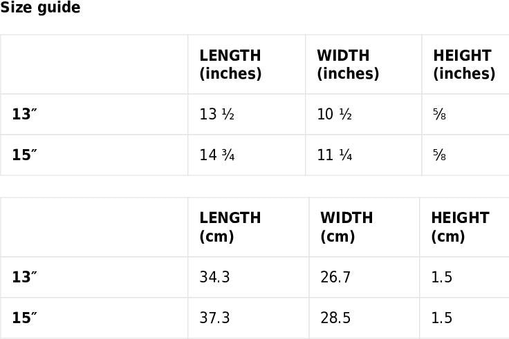 • 15″ sleeve weight: 8.8 oz (250 g)